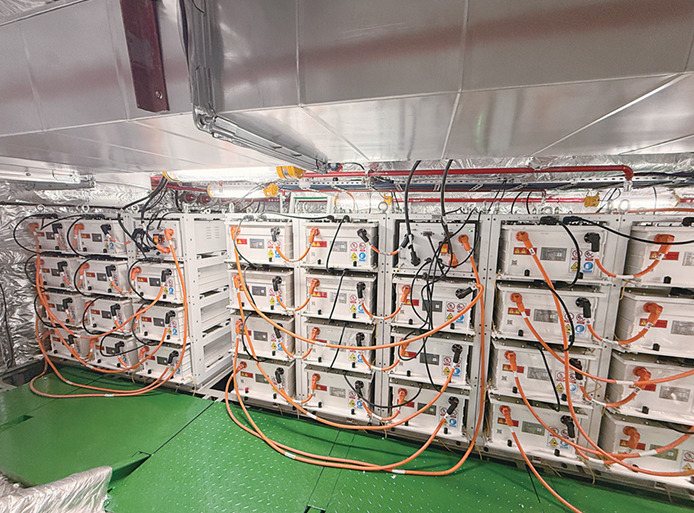江苏海事局“海巡06201”船2号电池舱,内设5个电池簇共55个电池包。
